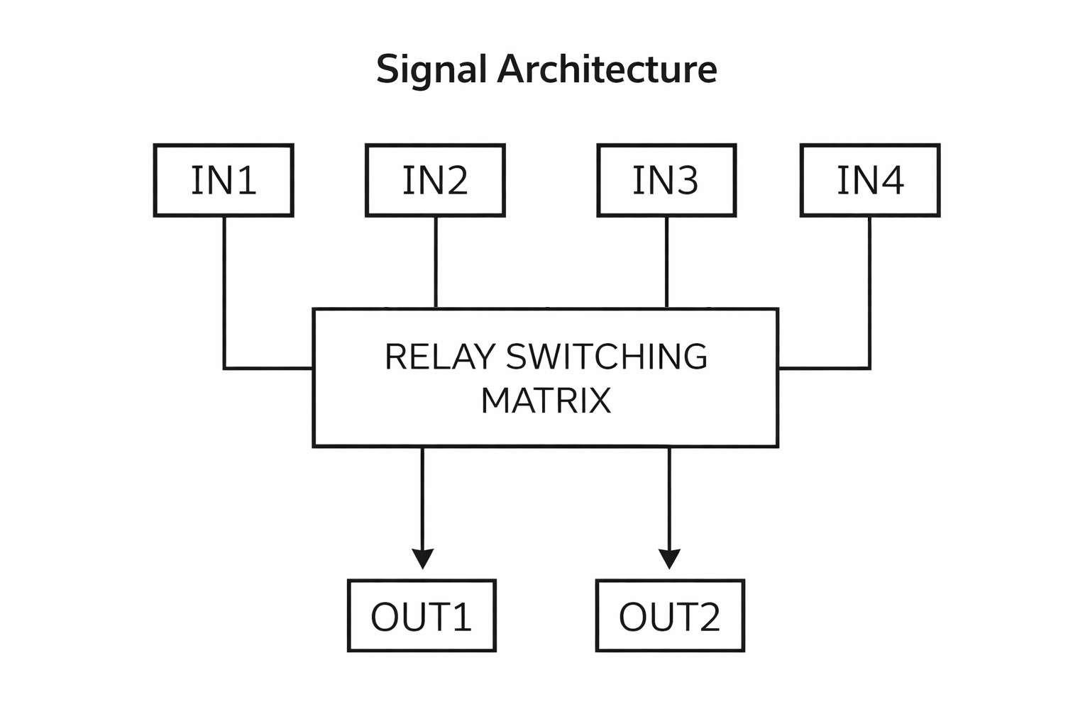 ELECTRONICALLY CONTROLLED PASSIVE SWITCHING | Balanced SIGNAL PATH | 4 BALANCED INPUTS | 2 BALANCED OUTPUTS | Precision Relay Architecure